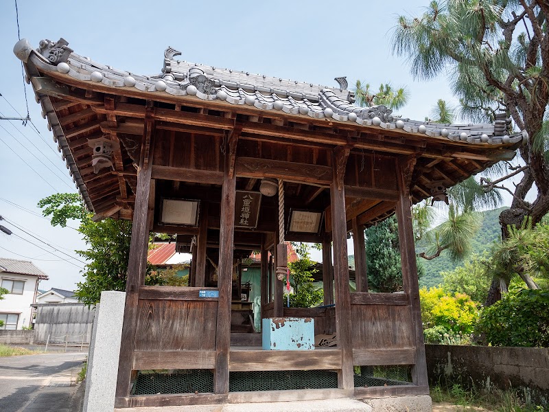 野呂川と中畑川が交わる場所にある神社です。境内の奥にお餅みたいな「力石」があります。昭和初期の頃まで、当時流行していた力試しに使われていたようです。現在は土台にガッチリ接着されていて動かせませんが、かなりヘビーな感じがします。この石を持ち運んだレジェンドをリスペクトして、名前が刻まれています。同じような力石が、安浦町内海北の「諏訪神社」にもあります。