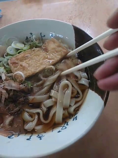 7月6日12時前入店、小さな薄揚げと小さなえび天の入ったワンコインきしめんを食べる。この暑い時期に暑い店内で温かいきしめんはちょっと失敗。