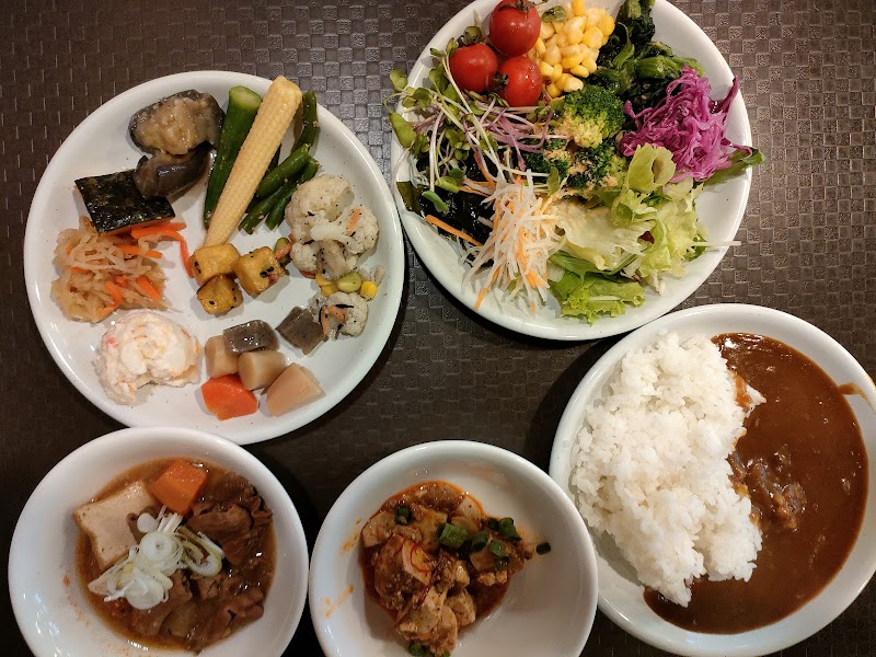 平日のランチに伺いました。ハンバーグとお肉がついたランチ。安定の味です。ここのコーンスープが濃くがあり大好きです。カレーは子供が好きそうな味ですね。ドリンクバーにノンアルコールビールも飲めます。ドリンクバーのカップが大きく何度もおかわりに行かなくていいのが良いです。サラダバーは種類が多いですね。他にはワッフルやたい焼きを自分で焼く事もできます。あとゼリーやソフトクリームわらび餅なども。ゆっくりランチを楽しめますので長居してしまいそうでしたが14時でランチは終わりの様です。今度は早めに行きゆっくりランチしたいです。