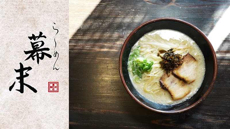 幕末初来店めちゃ腹ペコでした。臭みの無い豚骨スープだが、濃度もしっかりあり絶妙。チャーシューも理想的な食感◎ご飯にかける辛子高菜もピリ辛で◎店員さんの対応も明るく◎トイレも清潔◎めちゃ美味かった。次は腹ペコで無い時に再度来店します。