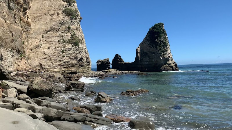 こんなところ来る人いないよね。駐車場から少し悪路を歩いて4,5分です。岩場は砂岩ではがれやすいので気を付けて歩きましょう。岸へ降りるためのロープがあるのでそれにつかまりながら移動すべし。落石が心配されるのであまり長居しないほうがいい。欲張ってうろうろしないほうがいいと思います。ちょっとした断層の観察もできます。