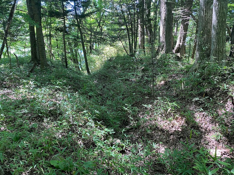 2021/8/6森に入ると主郭周りは畑になっているが、土塁と泉?周囲には堀跡、土塁から崖に向けて落ちる堀、竪堀が豪快に流れ落ちていた。