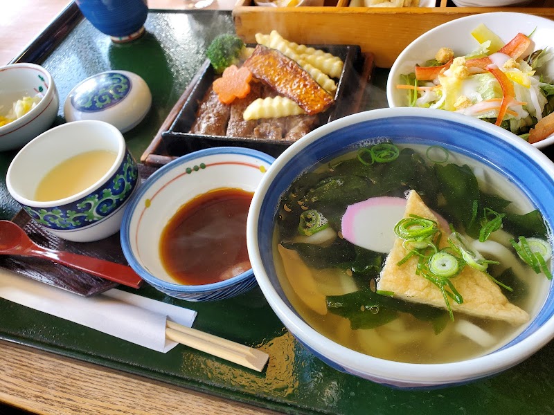 天ぷらがおいしいです。うどんつゆとの相性もよし。しかし店内には素敵な唐揚げの匂いが充満しています。多分唐揚げ、デミグラスカツ丼も美味しいのでしょう。こんど食べてみよう。なお、私が訪れたときはセルフサービスでドリンク飲み放題になっていました。お茶、アイスコーヒーなどありました。店内には地元のお年寄りが大挙して訪れておられます。駐車場もはいりやすく、便利なお店でした。