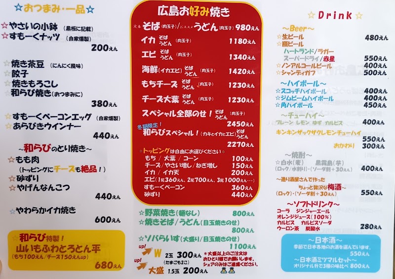 広島の本格お好み焼き屋さんです♪リーズナブルで美味しくて是非立ち寄って欲しい店です。夫婦で営業されており2人共に気さくでアットホームな感じです。後、日本酒を色々飲み比べが出来ます。