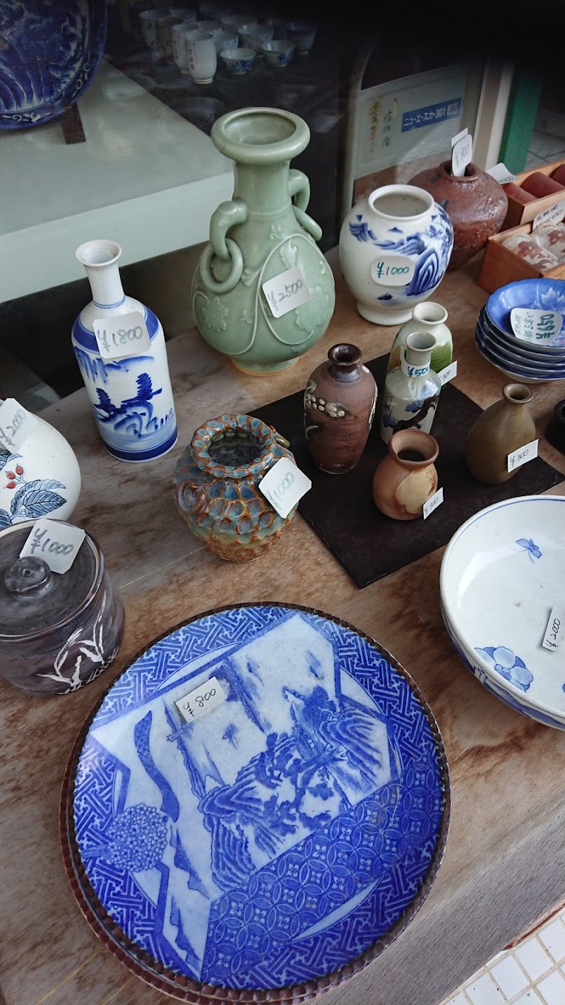 当然、人によると思いますが…(^_^;)以前は呉服屋をやっていたようですが、現在は(時代の流れにより)骨董品を販売しているお店です。私が行った時はおじいさんが一人で店をやっていました。古い壺、陶器、布地等が販売してました。細かいところだと扇子や雑貨、小物入れなんかもあります。値段は安い陶器だと1000~2000円くらいですが、やはり良いものになると2万円とかのものもありました。もちろん全ては見ていませんが、ミッキーマウスのグラスなんかも置いていて、人によっては欲しいものが見つかるかもしれませんね。こういう時店に入ると目利きのスキルが欲しいものです(笑)