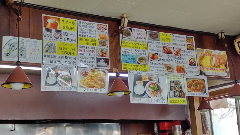 平日夜だからか予定していた店が空いてなかったため、急遽赴きました。70年近く前から営業されているとの事で店構えはかなり古いです。ご主人はテレビに夢中になっていましたが、しっかりと食事は作ってくれました。看板メニュー的な昭和のラーメン定食を頼みした。スープや麺は普通なのですが、チャーシュー、メンマ、ネギが古いのか独特の味になっており食べ切るのにかなり苦労しました。定食に付いてきたご飯も古く、水で流し込むように食べました。昭和は2年ほどしか生きてないのであまり詳しくはないですが、こんな味だったのでしょうか?