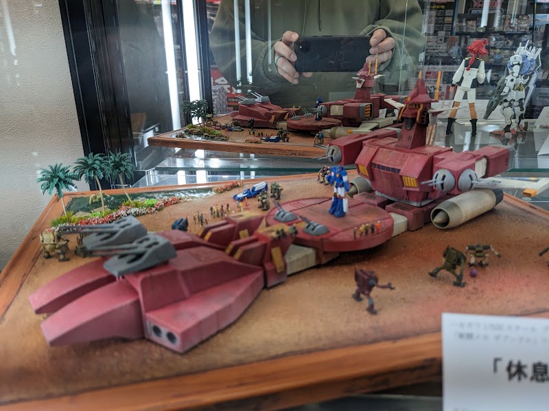 いつの間にか向かいのビルに引っ越し。ガンプラをあてにしたのだろう、ゆとりある売り場は閑散。売れないので店員も暇そう。ただ、その分工具などはしっかり見られるので、それ目的なら秋葉原よりありかも。あまり高い位置まで陳列してないし。ミニ四駆コースは用意なし。旧)ガンプラを目的で久し振りに足を運んだが、フロアが移動し2Fに。品揃えは以前からの充実ぶりで、系列店の中でも群を抜く。また、現在、模型専門誌ホビージャパンとのタイアップで、誌面を飾った作例現品がガラスケースに展示され、非常に勉強になる。作例展示は、ガンプラに限らずミリタリー系もあり、また毎月の号変更に応じ入れ換えられるようなので、新刊が出る度に足を運ぶ意味がある。商品の取り置きはTELで頼めるが、締めはその日限り。地下に3レーンのミニ四駆コースあり。無料。手洗いは、3階の売り場そと。階段だと上ってすぐ左。