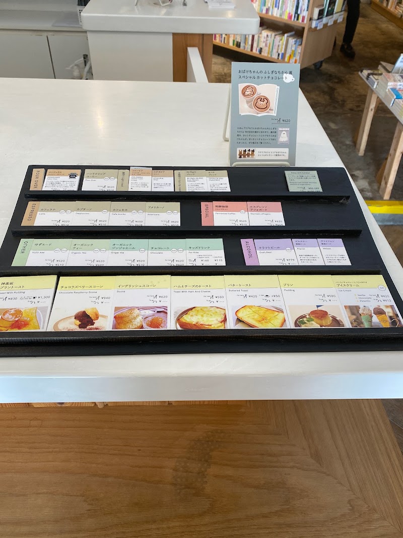 京都で飲んだこーひーやさんに東京でも出会いました!テラス席もあり、店内も広いです。本屋さん併設でゆっくりできます。また、コーヒーの説明も分かりやすく、もらえる栞のような説明用紙がよいです。