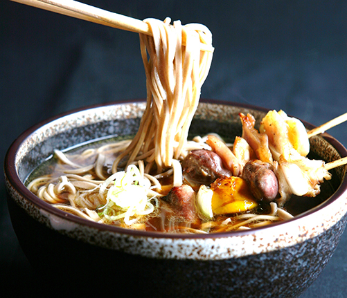 もつ串でちょいと一杯、至福のひととき最高でござんす。〆には、そばにもつ串ぶっ込みで決まり!
