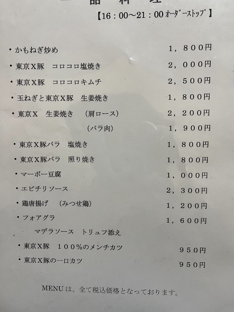 豚肉の素材が素晴らしく、東京Xを使用した料理が楽しめます。