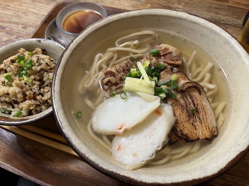 沖縄の古民家を改装したお店で、雰囲気がとても良かったです。座敷で、店内はいる時に靴脱ぐ感じなので、スカートの方は要注意です。沖縄そばは、鰹だしベースのあっさりとした味で、ソーキや三枚肉もとっても美味しかったです!11:30の開店目掛けて行ったら、店横の駐車場がほぼいっぱいでした。6台くらい停められます。1度に入れるのが6組ほどで、開店後すぐは入れませんでしたが、30分ほど待って入れました。沖縄そばなので回転早めです。