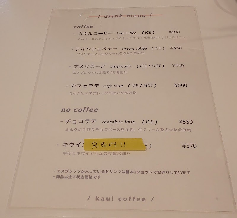 カウルコーヒー(テイクアウト専門、営業時間はインスタへ) |