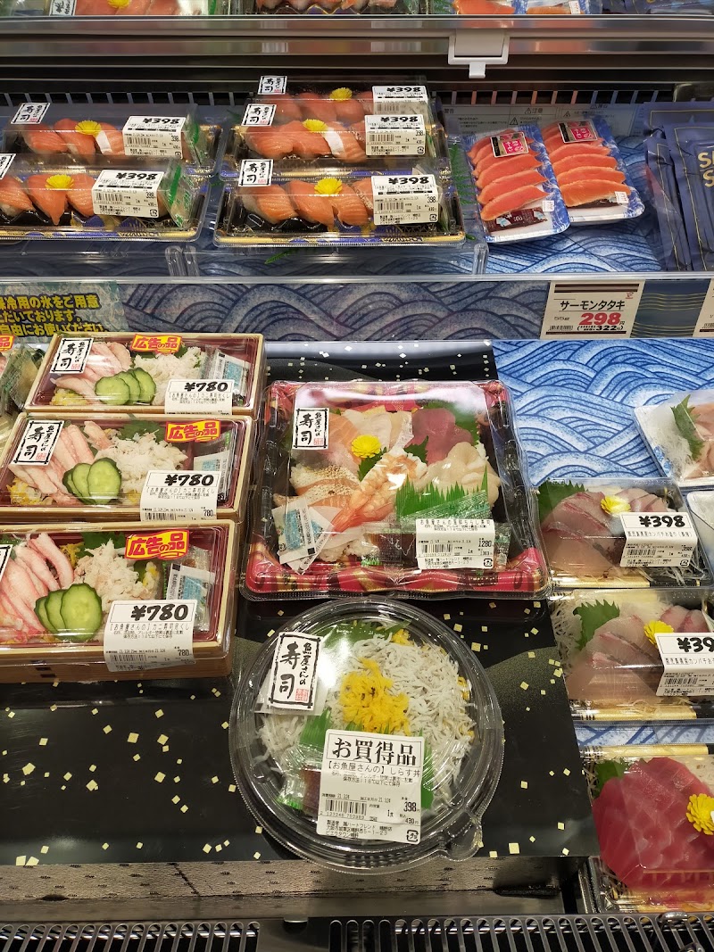 調味料などの種類が豊富。生鮮に関してはこの辺りのスーパーの中では質が良い。駅の西改札前なので、コンビニより安く飲み物やお菓子を買ってホームに行ける利点がある。弁当や惣菜、特に揚げ物が美味しい。