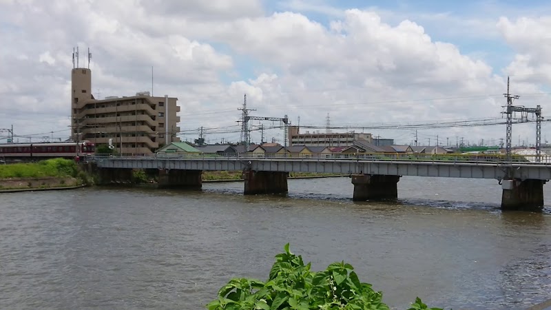 日光川にかかるサンサンブリッジ。河口から吹く風が心地よいです。近くに近鉄名古屋線が走っているので列車が見られます。