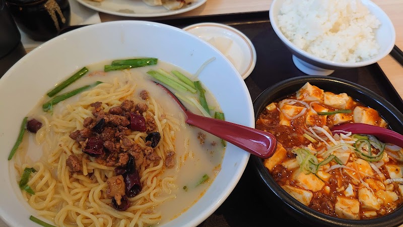 定食が充実してて、値段は凄くリーズナブルです。五目そばの定食にライスを追加したらお腹一杯になりました。五目そばは結構あっさりしてて、今まで食べてきた五目そばと違う味で好みが別れる感じでしたが、餃子はニラのパンチが効いてて美味いです。写真のとおり、餃子の盛り付けがやや雑な感じですが笑連れが注文した麻婆ラーメンは山椒が入っていない、シビ辛系ではなく旨辛系です。忙しいせいか、店員さんが席に案内してくれないのが個人的にはマイナスポイントでした。