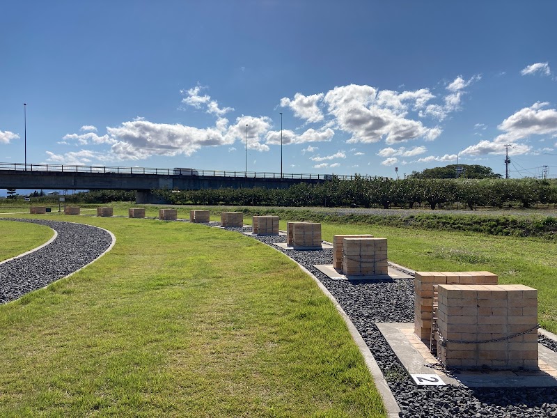 スケートボードで利用程よいバンクがありサーフスケートが8~9割路面が良いとは言えないためハードウィールでは快適とは言えないかもソフトウィールは関係なく乗れるが凄い勢いで減る仮設トイレと水道有り日陰はほぼ無し。
