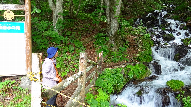 ミネラルウォーターのパッケージにでもありそうな水流が綾成す美しい姿をした滝。この前に立つと降り注ぐ冷涼感に包まれて冷蔵庫の中に入ったかのような気持ちになれます。