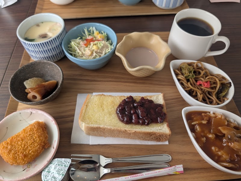 今日は10時過ぎに尋ねました珍しくお客様が2組しか居なくて駐車場に入るのも楽でした朝飯代わりにFモーニングを頂きましたピラフ 焼きそば サラダ 茶碗蒸し トースト 冷奴 コロッケとデザート勿論コーヒーも!お腹いっぱい満足でした。