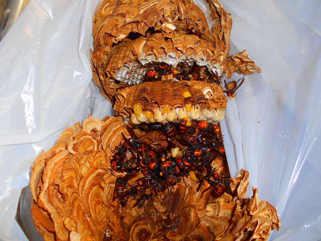 近所の方からスズメバチが他の蜂を襲っているとのことで巣の調査を依頼しました。時間より早く待機してくださり、調査もしっかりしてくださいました。結果として他の家屋に作られたスズメバチが我が家の庭にあった他の蜂の巣を襲っていて、ほぼ全滅していましたが、しっかり除去、かつ蜂が再度寄り付かないような処理をしていただきました。お値段もお手頃で、懇切丁寧な説明を行ってくださったので、この類のトラブルがあったときは是非利用されると良いと思います。
