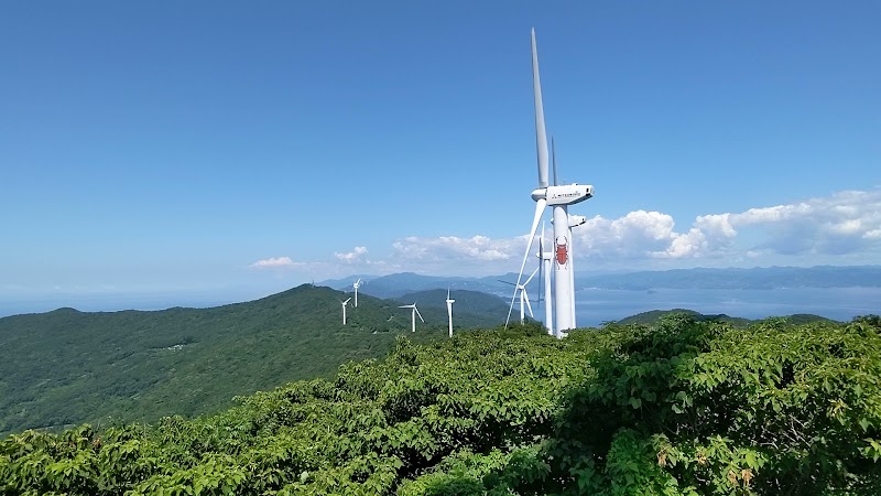 高台に風力発電がずらっと並んで壮観ですよ。大きさも回っている時の音も凄い佐田半島の両サイドの海と陸地の景色も最高。