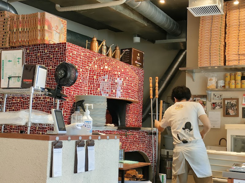 店主さんが「ナポリピッツァを食べた衝撃を伝えたい」という思いで、2020年から創業されたそうです。結構、いつもお客さんがいっぱいの感じがしました。店内では、真っ先に!目に飛び込んでくるのは赤いモザイクタイルが素敵なピザ釜です。本当に店内の装飾にもこだわりを感じます。目の前で生地をのばす店主さんの作業をみてワクワク😍してると、あっという間にピザが焼き上がります。窯焼きピザならではの香ばしいかおりが食欲をそそります🤣