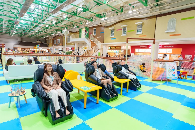 幼稚園児ぐらいがメインターゲットの遊び場所。それなりに広いです。無料のロッカーあり。椅子・机・マッサージ機(無料)あり。出入りや大人の交代自由。ショッピングセンター(イオン)のフードコート内にあるので、ご飯を食べに出ることも可能です。