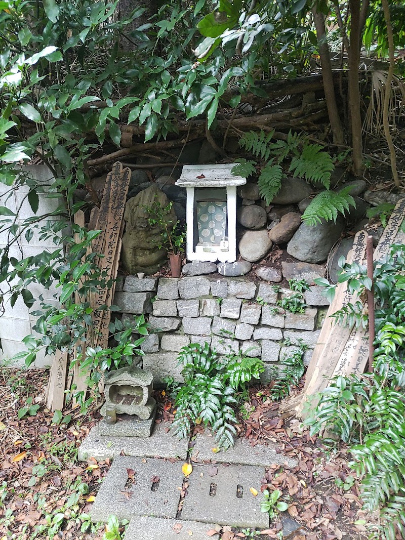 地蔵堂のすぐ上の左側が龍神様です。水が必要な時は岸谷の湧水から汲んで持参します。龍神様は観音菩薩様の守護役であり、天気をつかさどるので水に関するご利益があります。もちろん金運招福の神です。龍神の石像については、手を触れてお願いしても失礼ではありません。龍神様は人が好きですから純粋な心で触れ合えばいい事があるでしょう。右側の御神体は手を触れないようにしてください。下にある香炉に線香をあげて合掌の後に幕を開いて対面する事は可能です。偽りのない純粋な心で望んで下さい。お賽銭箱はありませんので、どうしてもという方は上にある日本山妙法寺にお布施をしてください。龍神様の真言は「オン_メイギャ_シャニエイ_ソワカ」です。卒塔婆が立ててありますが、日本山妙法寺の山主供養の為です。世襲制ではないので血縁による代替わりではありません。前山主が逝去され無人の間は代わりに清掃をさせて頂きました。以前の状況は画像にあります。