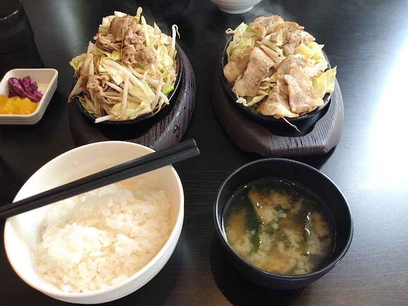 2025/4/21訪問今まで何度も目の前を通っていましたが、お店の存在に気づかず…幟を立てるお姉さんがいたので、何だ?って調べて発見。強火でジュージュー系のご飯食べ過ぎになるパターンです。調子に乗って、牛すじ並み盛り(野菜ミックス、焼肉のタレ、にんにくあり)をいただきました。味付けはちょっと濃いめですが、その影響でご飯が進みます!ご飯と味噌汁は、セルフスタイル。ご飯3杯いけそうでしたが、2杯で我慢しておきました😅味噌汁も美味いので、おかわりしてしまいまし。見た目は、鉄板がそれほど大きくないので、油断しますが、なかなかのボリュームでした。普通にランチなら、小盛りで十分満足できます。今度は、サガリ小盛りにしたいな〜と思いました。