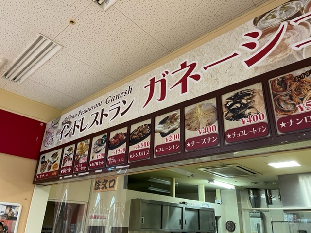 フードコートエリアとは別に独自のイートインスペースを持っているお店。呼び出しベルも置いてあったので、どの店でも使えるように開放されたスペースでの飲食も可能な様子。セットメニューのナンは100円追加でチーズナンに変更できる。イートインの場合でもまず、出入り口近くのレジで会計して店内のカウンター席に着席する。カウンター下には棚もあって手回り品を置いておくことができるが奥行きがあまりないので大きなものは置けない。普段からの食べ慣れたカレーもいいが、このようなカレーも定期的に食べたくなる。辛さは5段階用意されており、メニューの記述では「3」の辛口が通常の辛さだそう。「3」の辛さでもそこまで辛味はない。次は「4」の激辛を試してみるのもよさそう。