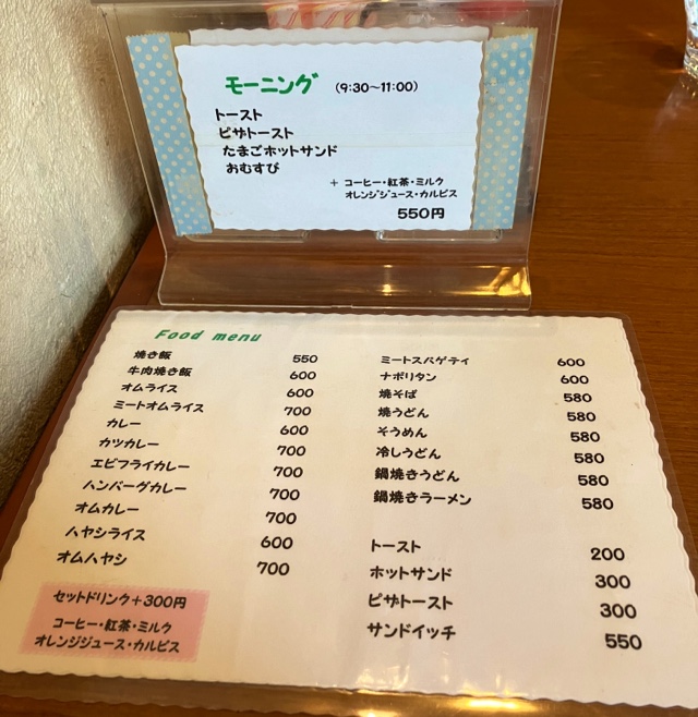 今では数少ない喫煙可能の喫茶店ランチタイムは満席になる人気店です木金土曜日は午後5時半から10時すぎまでやっています大盛でもお値段そのままですマンガや雑誌もたくさん置いています。