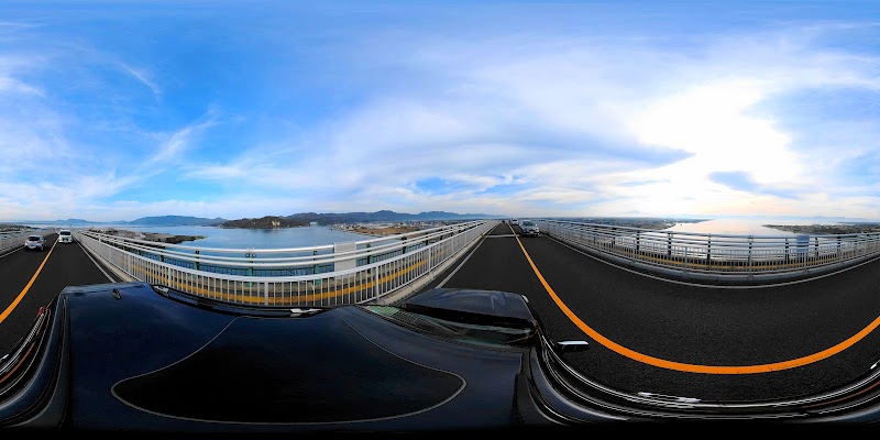 車のアクセルをベタ踏みしなくても、普通に橋を上がって下れます。全長1700㍍.水面髙44・7㍍.松江市側勾配6・1%(境港市側5・1%)です。日本海と通じる境水道大橋が全長709㍍.水面髙40㍍.境港市側勾配7・25%と高さを稼ぐ為に「つ」の字状に弧を勾描いて急勾配ですが、そもそも境水道大橋よりも高い水面髙の江島大橋は必要だったのか疑問です?因みに、松江市市内完結の中海大橋は全長1446㍍.水面髙45㍍.勾配7%とよりベタ踏み坂ですし、又大阪市内完結のなみはや大橋は全長1740㍍.水面髙47㍍.勾配6・9%と江島大橋より上には上がいますが、やはりテレビCM効果は絶大ですね。
