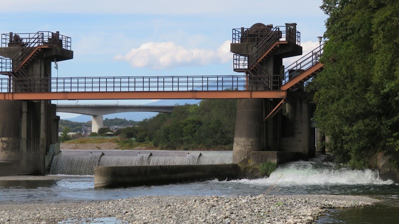 高岩頭首工 富士川水系釜無川竜王用水に取水している堰。取水口、土砂吐等は左岸側にある。安全面の都合か封鎖されており、近づくことはできない。かつては高岩を利用して取水していたとのことだが、詳細不明。