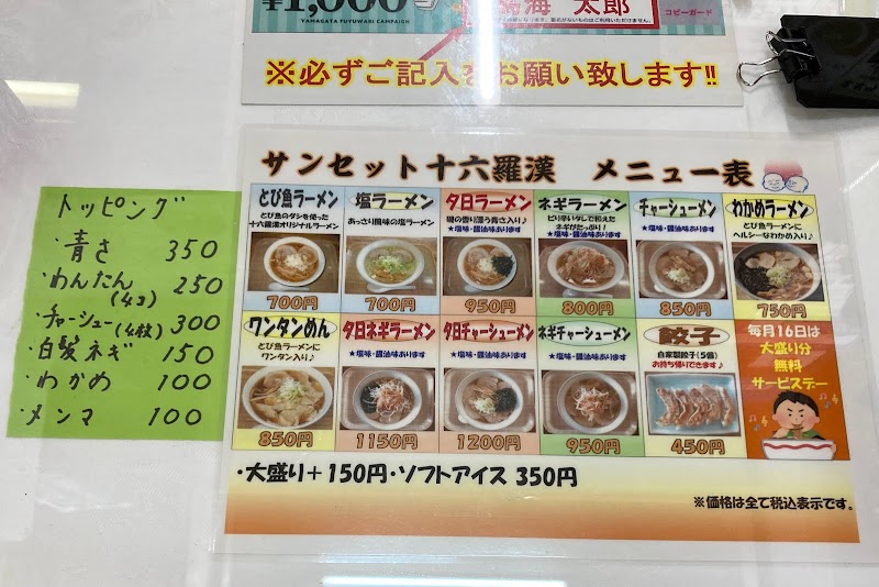 夕日ラーメンを頂きました。アオサの載ったラーメンは久しぶりでした(個人的には岩海苔も欲しくなりました…笑) ラーメンも美味しい上に十六羅漢岩周辺のロケーションも素晴らしいのでまた再訪したいと思います。