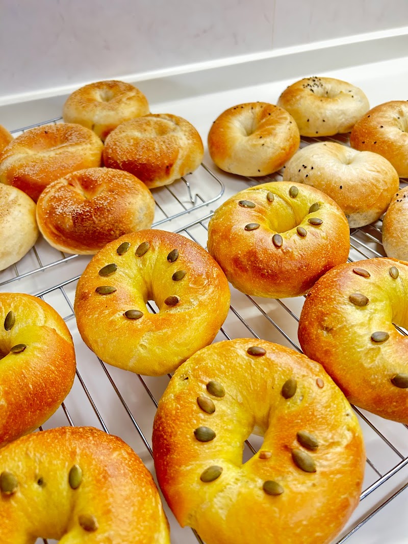 インスタを調べたらお取り置きができるとのことで、事前にご連絡させていただき10:30過ぎに到着。えだまめチーズが売り切れとありました☺︎ロシアンピロシキ、ブルーベリークリームチーズ、カフェチョコを購入しました☺︎ランチにロシアンピロシキとブルーベリークリームチーズをいただきました。軽くトースターで温めてからいただきましたが、サクフワでとても美味しかったです。ロシアンピロシキはお惣菜ベーグルとしてピッタリ!ブルーベリークリームチーズも甘すぎず、さっぱりとした後味でした。カフェチョコはこれから食べるのでまた楽しみです☺︎日によってメニューが多少異なるのでしょうか?また午前中に伺える機会がありましたら、ぜひ購入しにいきたいです☺︎