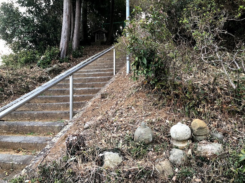 階段を少し登ったところにあります。境内に滑り台と鉄棒があり、小さな公園みたいになってます。