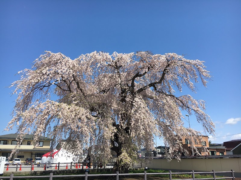 巨木の枝垂れ桜が美しく咲き誇る、圧倒的な存在感を持っています。