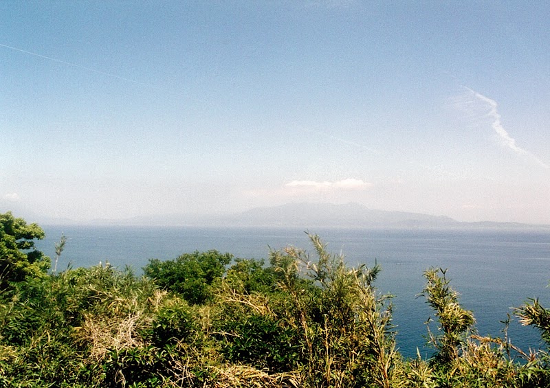 知林ヶ島の東海岸に建つ灯台です。鹿児島湾(錦江湾)に浮かぶ知林ヶ島へは、 3月から10月にかけて干潮時に現れる砂州の道を歩いて渡ることができ、島内を一周する散策路を歩いて灯台まで行くことができます。昭和32年(1957年)5月に初点灯されたという灯台で、入り口の扉の上に「知林島灯台 初点昭和32年5月」と書かれたプレートが掲げられていました。