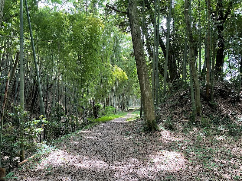牛久城は三方を牛久沼に囲まれた舌状台地の上に建つ平山城だったそうです。それは面白い形状をした城だったのですね。かっぱの小径コースの案内には「沢山の木々に囲まれて木漏れ日散歩が楽しめる」と書いてあり、道も整備されていると書いてあったけど…確かに木漏れ日散歩で間違いはないが、雑木林の中をここで間違いない!?と心配になりながら突き進む感じでした😅行けども行けども看板が見つからず… ようやく「牛久沼かっぱの小径コース」の案内板を見つけた辺りで、空堀と土塁を確認する事が出来ました。結局、他の方が口コミでアップしているような縄張り図付きの看板を見つける事は出来ず、城址の一角に足を踏み入れただけで終わってしまいました。